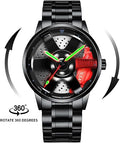 Car Wheel Watch, Stainless Steel Mens Wristwatch with Spinning Car Rim Hub Design, Japanese Quartz Movement, Water Resistant, Scratch Resistant Gifts for Car