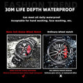 - High quality materials. High hardness crystal glass (key scratch resistant), alloy case back, resistant to pressure and abrasion. Black tone with IP plating technology and stylish dial design. We have two strap options, stainless steel strap/headskin leather strap; resistant to wear and tear, providing a comfortable wearing experience.