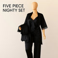 Luxurious 5-Piece Silk Pajama Set with Lace